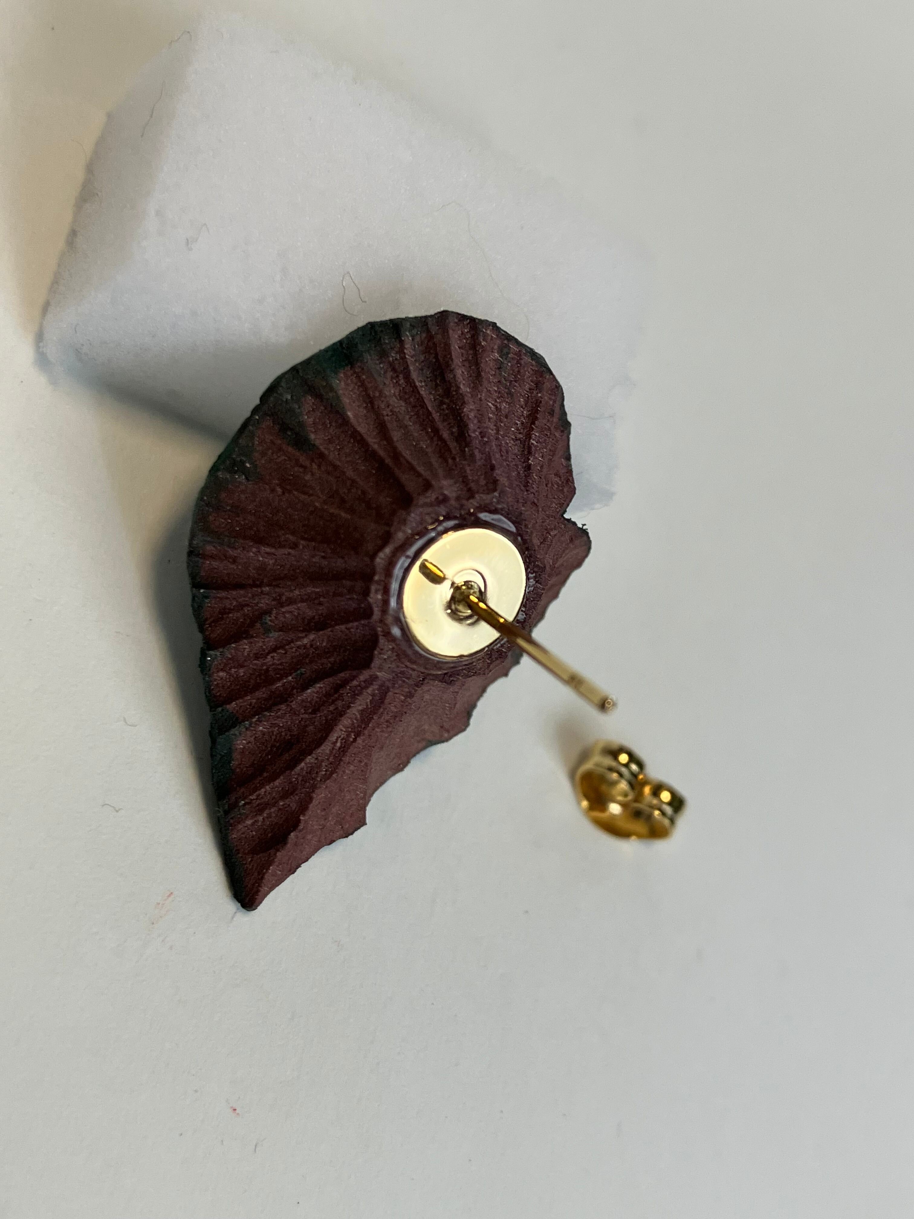 ベゴニアの葉っぱを木彫りで作ったピアスです。