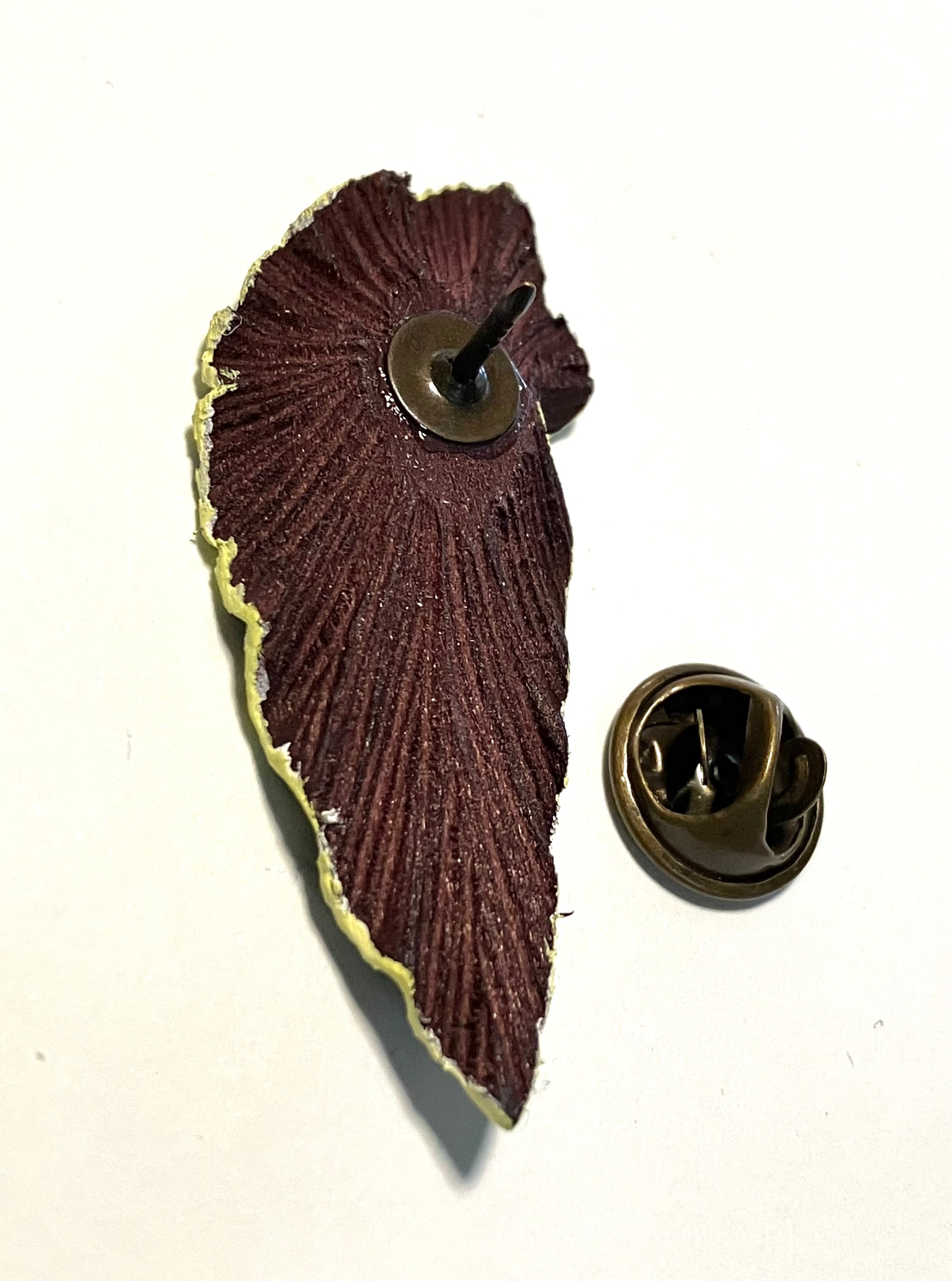 ベゴニアの葉っぱを木彫りで作ったピンバッジです。