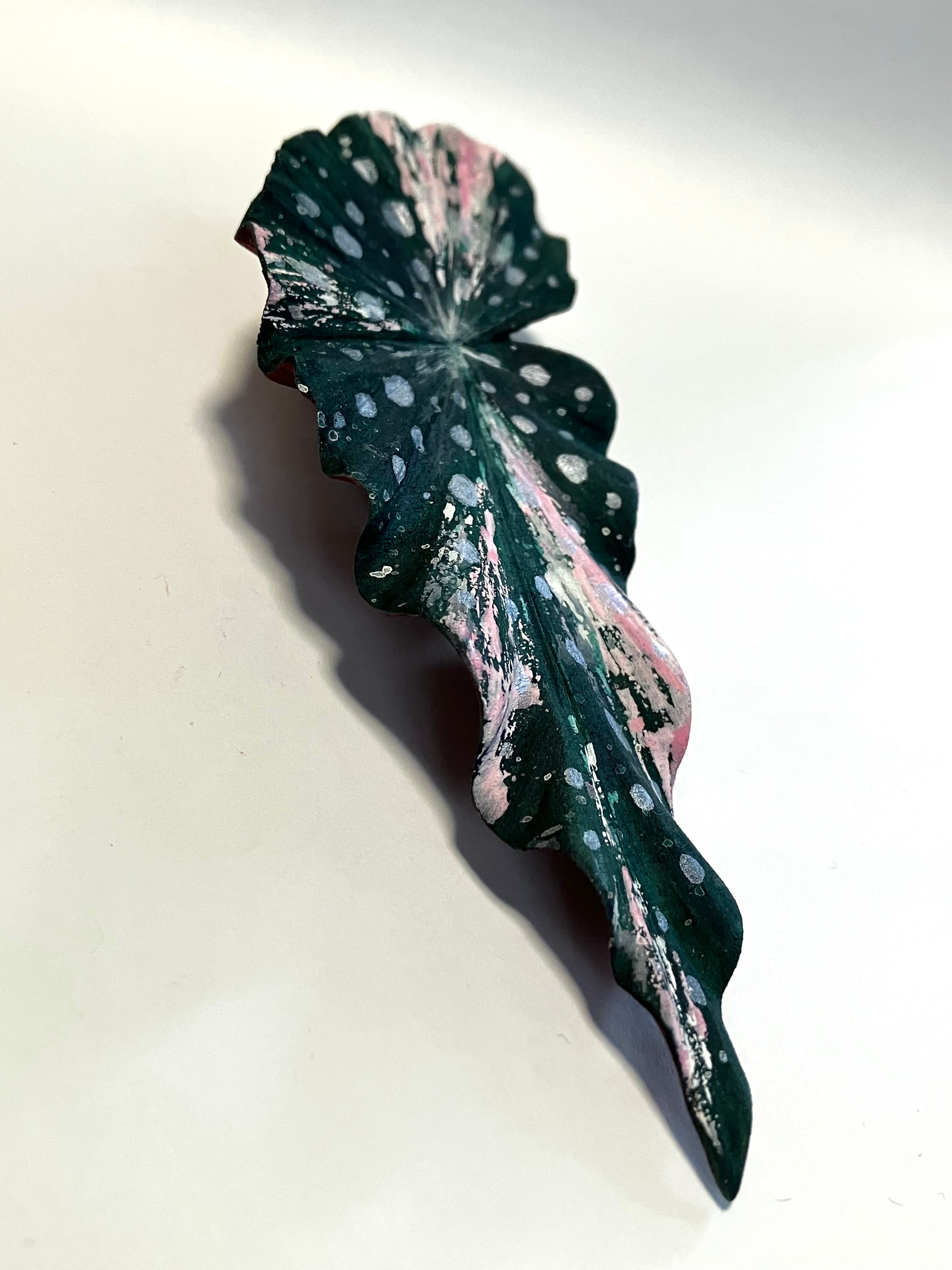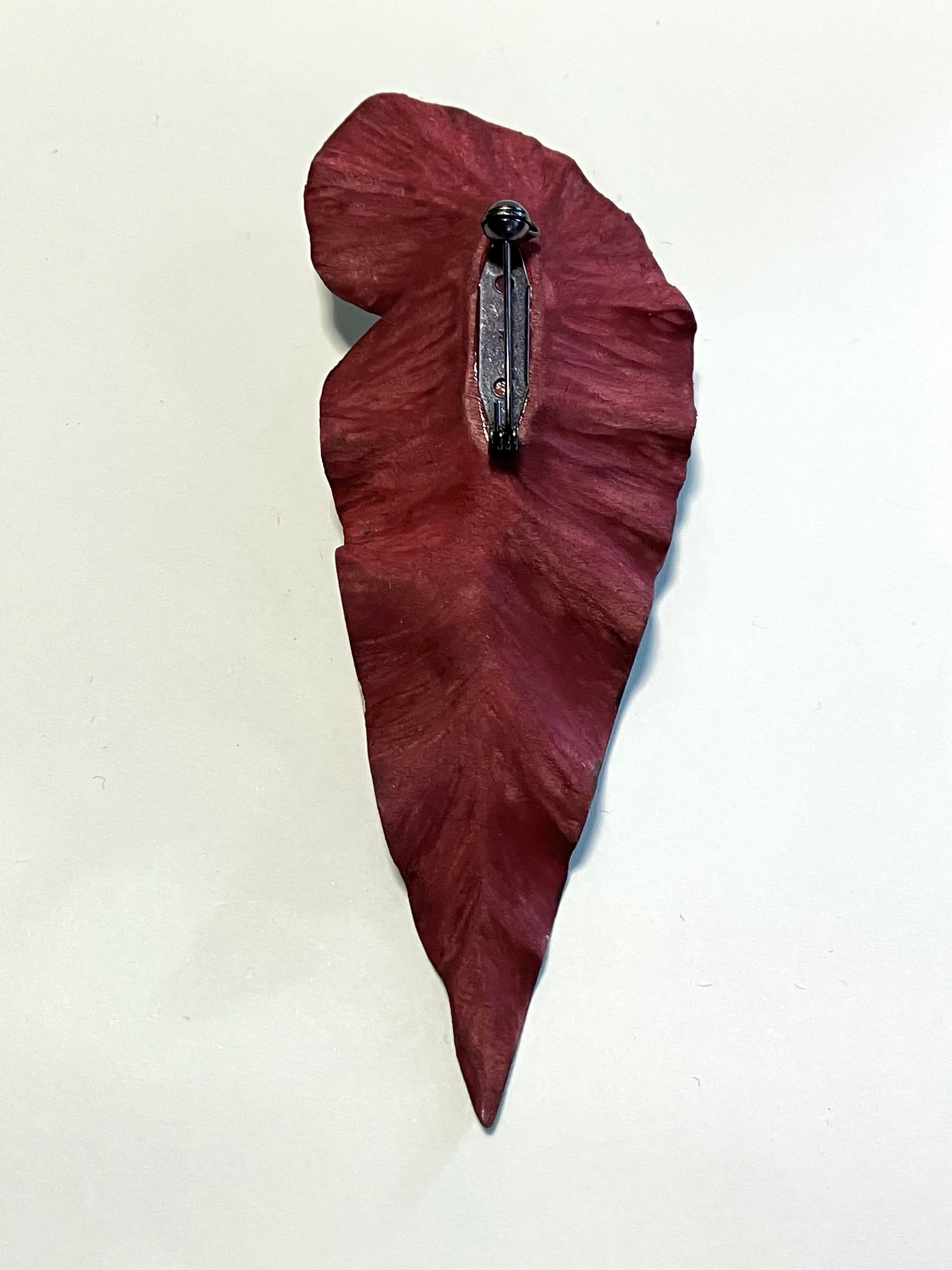ベゴニアの葉っぱを木彫りで作ったブローチです。