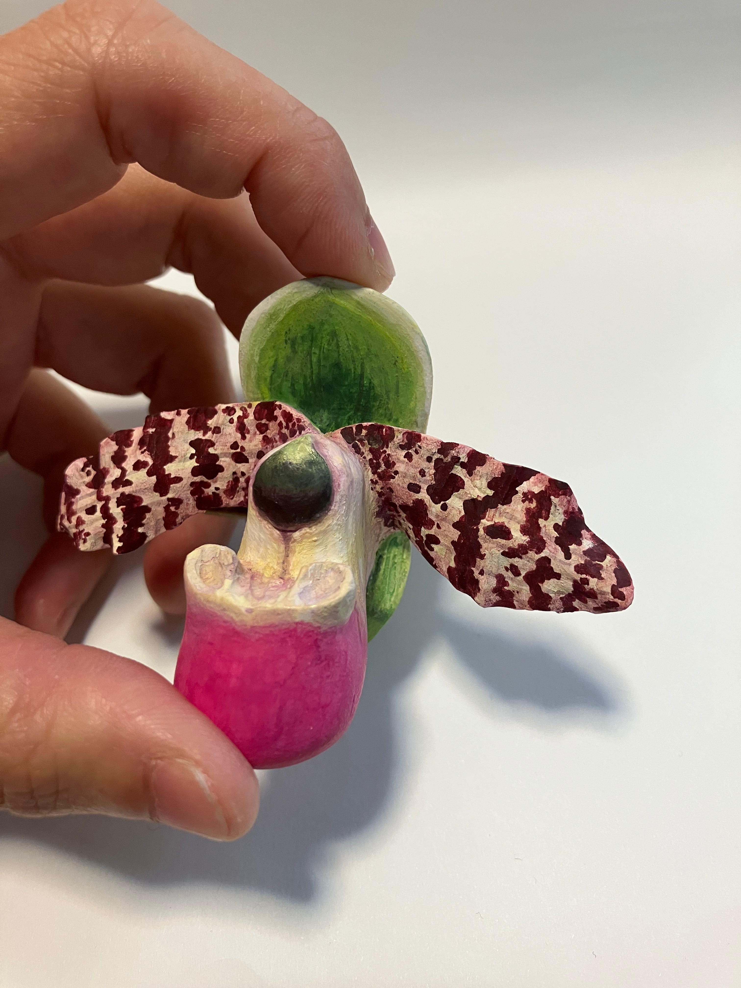 蘭の花を木彫りで作ったブローチです。