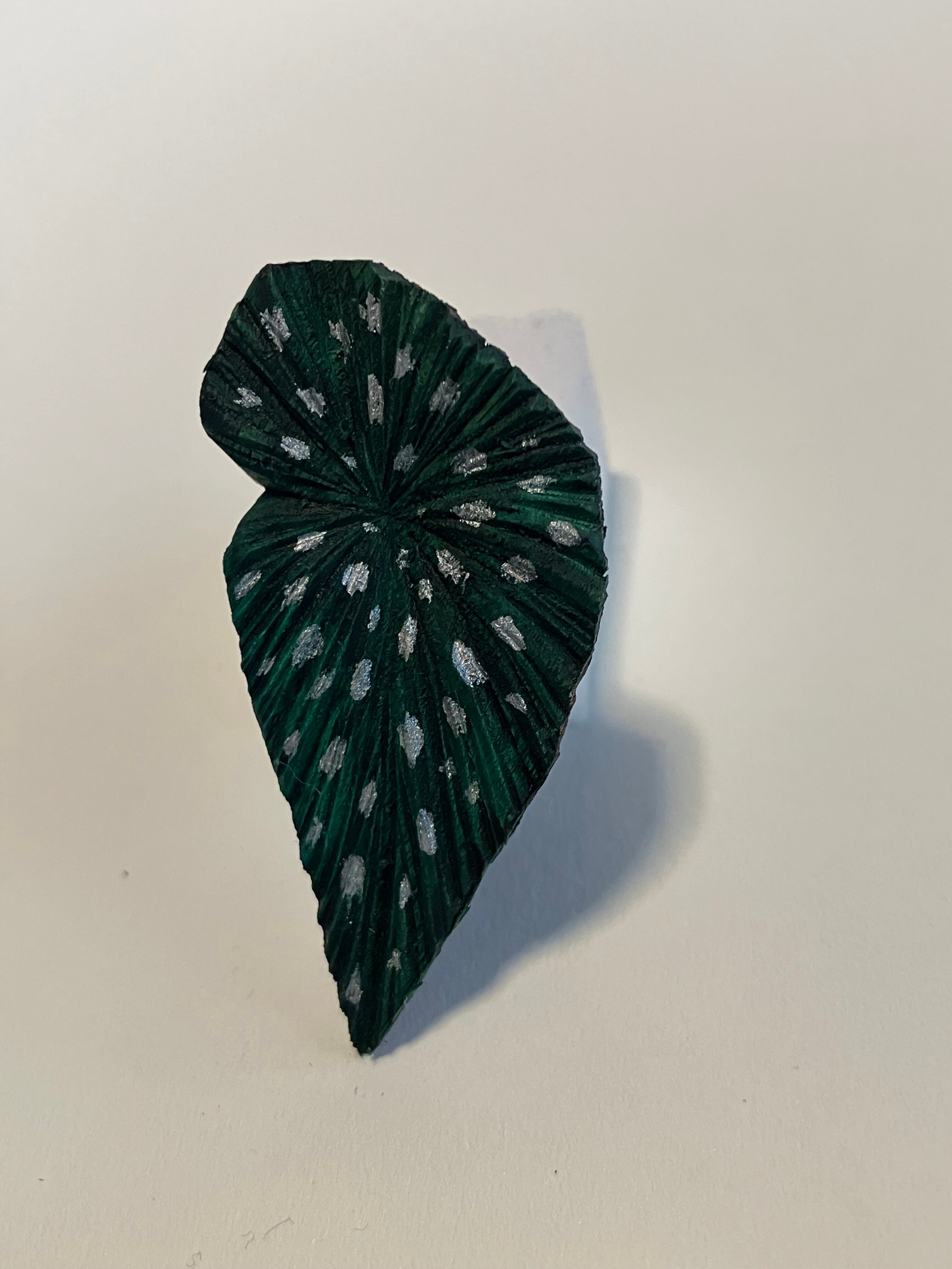 ベゴニアの葉っぱを木彫りで作ったピアスです。
