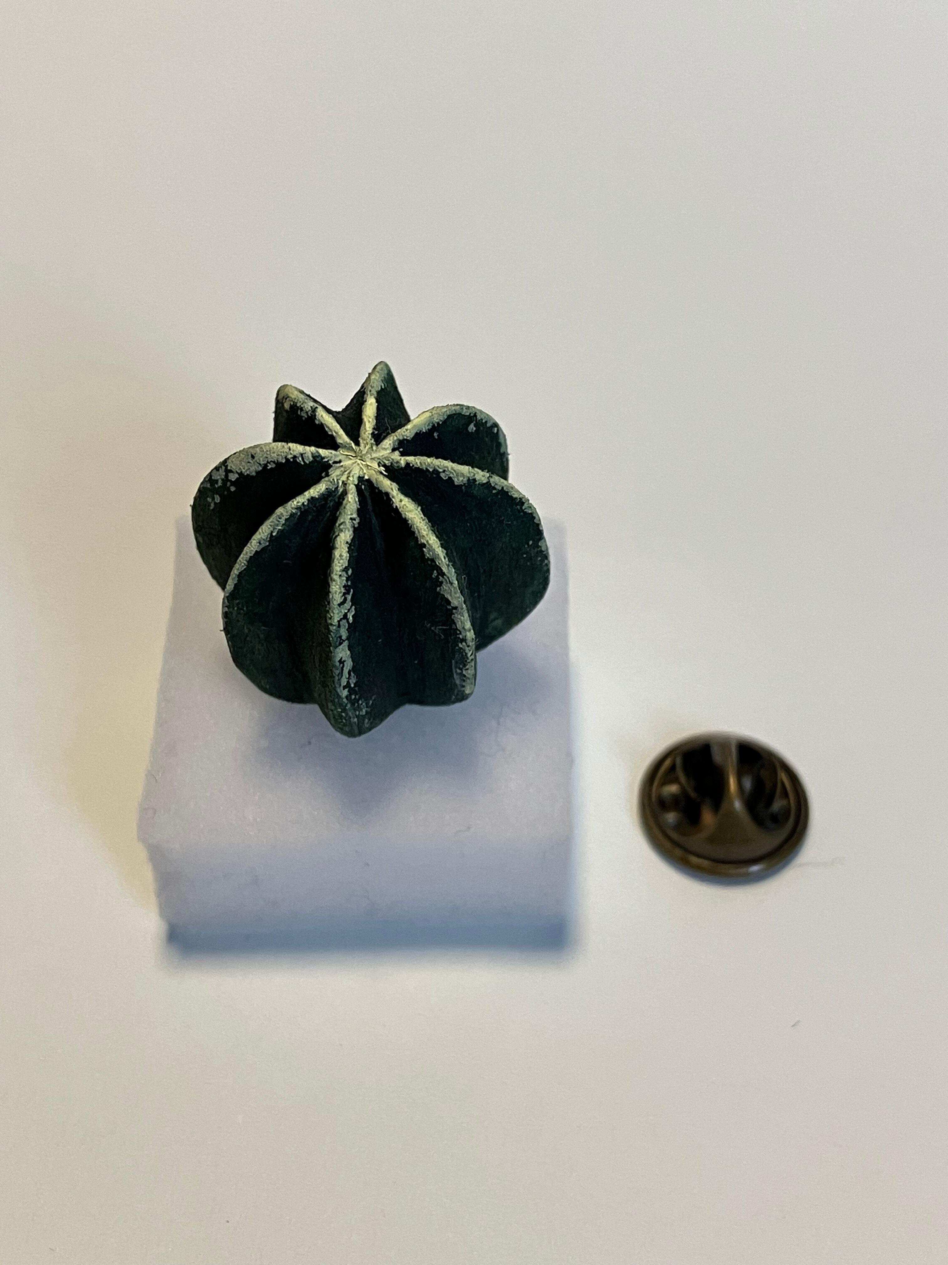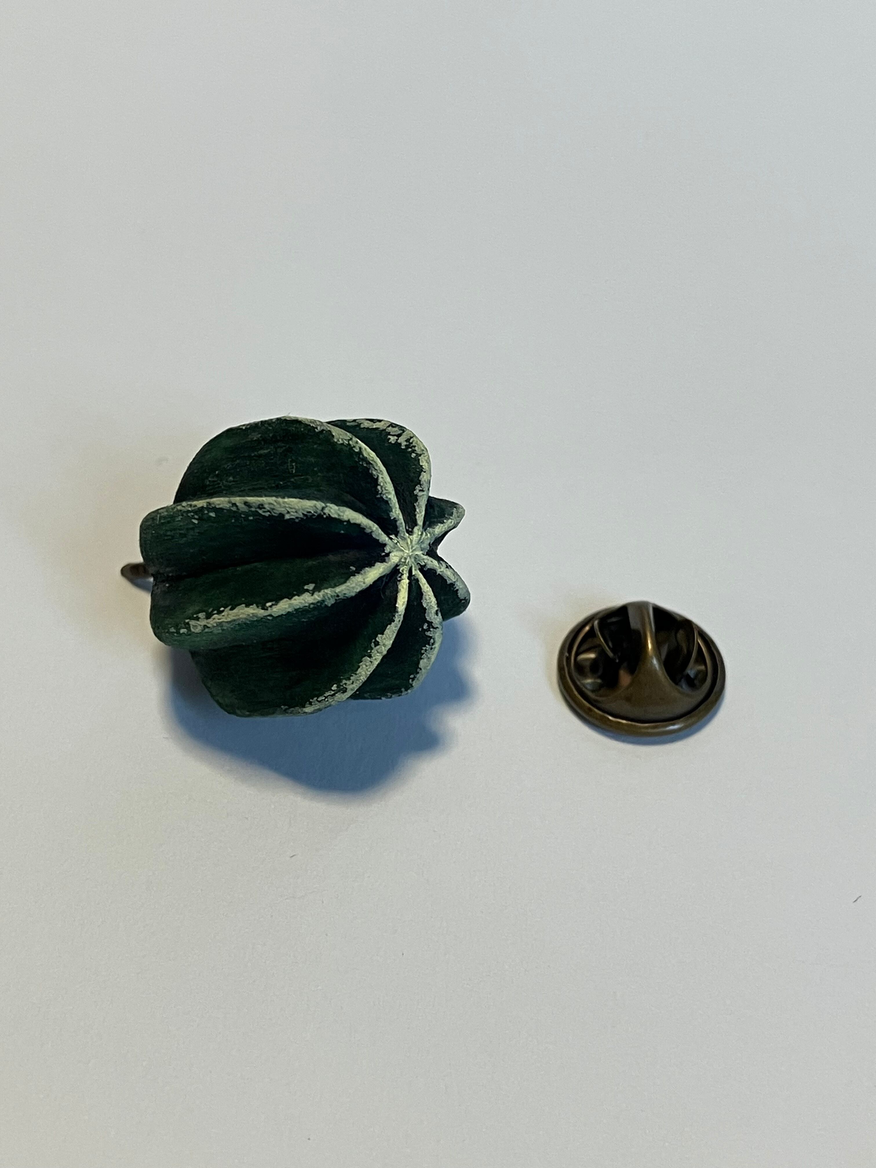 サボテンユーベルマニアを木彫りで作ったピンバッジです。